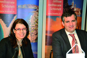 (lop) Meri Matesic, Direktorin der Kroatischen Zentrale aus Zagreb und Mato Radic, Deutschland-Direktor der Kroatischen Tourismuszentrale in Frankfurt (Foto), brachten die neuesten News aus Kroatien. "2012 war ein großartiges Jahr für den kroatischen Tourismus", freute sich Matesic heute morgen bei der ITB.