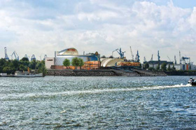Auf der Baustelle des neuen Stage Musicaltheaters im Hamburger Hafen