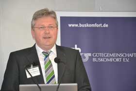 Bei der 38. Mitgliederversammlung der GĂĽtegemeinschaft Buskomfort (Gbk) im Rahmen der Jahrestagung des Internationalen Bustouristik Verbands IBV heute in Augsburg hat Vorsitzender Hermann Meyering (Foto) einen "deutlichen positiven Stimmungswandel in der Gesellschaft auf Grund des positiven Presse-Echos auf den aktuellen Fernbus-Boom" ausgemacht.