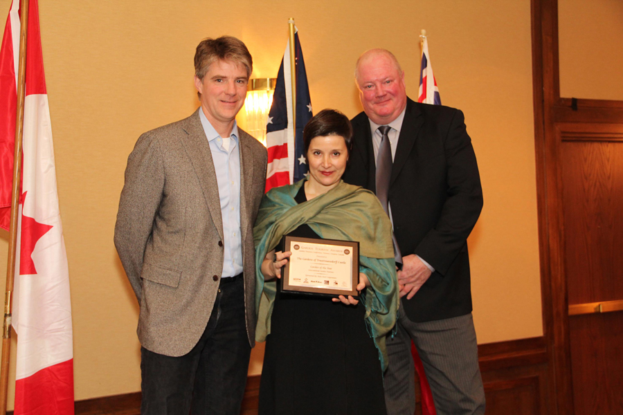 Die Gärten von Schloss Trauttmansdorff haben auf der Garden Tourism Conference in Toronto, Kanada, die begehrte Auszeichnung „Internationaler Garten des Jahres 2013“ erhalten. Nach den Titeln „Schönster Garten Italiens“ 2005 und „Europas Garten Nr. 6“ 2006 sind die Gärten von Schloss Trauttmansdorff damit in die Liga der berühmtesten Gärten und Parks weltweit aufgestiegen. Die Garden Tourism Conference mit Sitz in Toronto, Kanada, begründet die Verleihung der hohen Auszeichnung an die Gärten von Schloss Trauttmansdorff mit der touristischen Bedeutung der Gärten für ihr Land und unterstreicht dabei ihre Qualität, Schönheit und Vielfalt. Besonders beeindruckt hat die Jury die Entwicklung der Gärten: Erst 2001 eröffnet, verzeichnen sie heute bei einer Öffnungszeit von 7,5 Monaten jährlich einen Besucherstrom von über 400.000 Menschen pro Gartensaison und sind damit ein wichtiger Impulsgeber für die Tourismuswirtschaft in Meran und Südtirol. Die internationale Auszeichnungwurde im Rahmen der Feierlichkeiten der Garden Tourism Conference 2013 übergeben (Foto). Dieser Internationale Gartentourismuspreis stellt eine besondere Auszeichnung dar, wenn man bedenkt, dass der vorhergehende Preisträger der berühmte Singapore Botanical Garden war. Für die gelungene Verbindung von Natur, Kunst, Geschichte und Tradition sowie ihren Innovationsgeist wurden die Gärten von Schloss Trauttmansdorff bereits 2005 zum „Schönsten Garten Italiens“ gekürt. Auf unserem Foto sind zu sehen: Dr. Heike Platter (Mitte, Schloss Trauttmansdorff), Alexander Reford, Vorsitzender des Canadian Garden Tourism Council (links) und Bill Hardy vom Komitee der Canadian Nursery Landscape Association (rechts). Foto: www.gardentourismconference.com