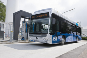 Mit der Inbetriebnahme der Wasserstoff-Tankstelle durch das Karlsruher Institut für Technologie (KIT) nimmt der Shuttleservice für Studierende und Mitarbeiter mit zwei Mercees-Benz Citaro FuelCELL-Hybrid Brennstoffzellen-Bussen seinen Betrieb auf.