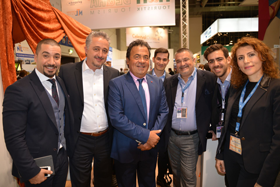 Auch am Stand von H&H Touristik aus Karlsruhe gab es freudige Gesichter: Hakan Enüstün (zweiter von links), Geschäftsführer, freute sich mit seinen Geschäftspartnern über den regen Zuspruch am ersten Messetag in Berlin.