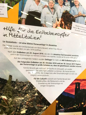 (lop) Behringer Touristik hat für Erdbebenopfer von 2016 und 2017 im italienischen Dorf Amatrice an die Ferienanlage Scoiattolo gespendet.