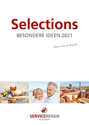 In genau dem luxuriösen Hotel logieren, in dem James Bond Poker spielte oder in einem eleganten Seebad an der Adria an einem Pralinen-Workshop teilnehmen – solche besonderen Reiseerlebnisse bieten die Programme, die Service-Reisen unter dem Titel „Selections – Besondere Ideen für 2021“ für die kommende Saison zusammengestellt hat. Der 65 Seiten starke Katalog bietet eine erlesene Auswahl außergewöhnlicher Programme (Foto: Katalog-Titelbild c: Service-Reisen).