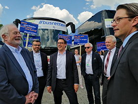 (lop) Jetzt doch: Soeben hat Bundesverkehrsminister Andreas Scheuer (r. im Foto mit den Verbandsvertretern) der Bus Branche 170 Millionen Euro Soforthilfe zugesagt.