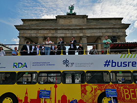 Unter dem gewaltigen Eindruck von über 1000 durch die Straßen Berlins bis zum Brandburger Tor laut hupend fahrenden Reisebussen aus allen Bundesländern, betonte der Bundesverkehrsminister gegenüber bdo Präsident Karls Hülsmann, RDA Präsident Benedikt Esser und dem gbk Vorsitzenden Hermann Meyering: „Sie brauchen jetzt nicht noch einmal wieder zu kommen. Lassen Sie uns jetzt einfach unsere Arbeit machen.“
