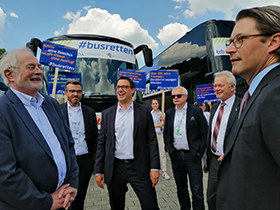(lop) Erfolg fĂĽr die Busbranche: Die aufwendige Lobbyarbeit von bdo und RDA in Verbindung mit den beiden gmeinsamen Aktionstagen - gemeinsam mit der mit gbk - in Berlin haben sich gelohnt: Bundesverkehrsminister Andreas Scheuer steht zu seinem vor 2 Wochen gegenĂĽber dem bdo gegebenen Wort (EuroBus berichtete) und stellt Busreiseunternehmen 170 Mio Euro aus dem Topf des Bundesverkehrsministeriums als nicht rĂĽckzuzahlende ĂśberbrĂĽckungshilfe bereit. Abgesegnet wird dieses Finanzpaket mit dem morgen im Bundestag zu beschlieĂźenden Nachtragshaushalt, so Scheuer heute bei der GroĂźdemo in Berlin. Ausgezahlt werden soll dem Vernehmen nach ab Juli an Busunternehmen pro Reisebus der Euro 6 Norm.