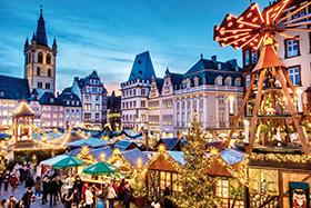 Vor dem imposanten Trierer Dom und auf dem mittelalterlichen Hauptmarkt (Foto, © Werner Hardt) lädt ein einzigartiges Dekorationskonzept und handwerklicher Weihnachtsschmuck sowie leckere regionale Spezialitäten zum gemütlichen Bummel ein. Original „Winzerglühwein“ und „Glühviez“ schätzen besonders die Besucher aus Frankreich und Belgien. Nur in Trier residiert die einzige „Glühweinkönigin“ in Deutschland.