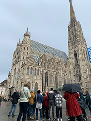 Mit dem Bus ging es vorbei am Prater und vielen weiteren Sehenswürdigkeiten, bevor die Innenstadt bei einem Stadtrundgang entdeckt werden konnte: die Hofburg (Foto oben), sowie der Stephansdom (Foto unten) durften dabei natürlich nicht fehlen. Nach einer weiteren Stunde zur freien Verfügung, die viele der Reisenden für einen Besuch in einem der berühmten Wiener Caféhäuser nutzten, ging es mit dem Bus wieder zurück an Bord der DCS Amethyst. Direkt im Anschluss nahm die DCS Amethyst Kurs auf Budapest.