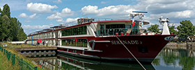 Service-Reisen hat nun eine kreative Antwort gefunden: Zum traditionsreichen Straßburger „Christkindelsmärik“, dem ältesten Weihnachtsmarkt Frankreichs, der bereits seit 1570 besteht, chartert der Gießener Paketer kurzerhand ein eigenes Hotelschiff. In optimaler, zentrumsnaher Lage – nur etwa 2.000 Meter vom historischen Stadtzentrum entfernt – entsteht auf der MS Serenade 2 ein schwimmendes Zuhause auf Zeit (Fotos: Service-Reisen, Feenstra Rivercruises).