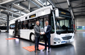 Einen ausgefallenen Linienbus hat die Omnibusverkehr Spillmann GmbH Ende Oktober im Mannheimer Omnibuswerk entgegengenommen. Der Geschäftsführer Bülent Menekse (auf dem Foto rechts mit Hermann Fröhlich, Leiter Verkauf Region Südwest, c: Daimler Buses) hat in Zusammenarbeit mit den Mercedes-Benz Omnibusdesignern einen weiteren Mottowagen für seinen Fuhrpark geschaffen. Die neue „City Stretch Limousine“ basiert auf dem Mercedes-Benz Linienbusses Citaro hybrid.
