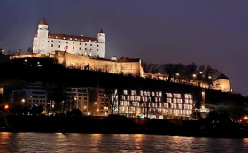 Weiter ging es entlang der mittelalterlichen Stadtmauer am Grassalkovich Palais vorbei hinauf auf den Burghügel mit seinem atemberaubenden Panoramablick auf die Stadt und die Umgebung. Hier konnte man das 4-türmige Wahrzeichen der Stadt - die 85m über der Donau gelegene Burg Bratislava – bewundern.