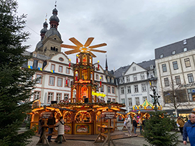 Zweiter Tag der EuroBus Advents-Leserreise entlang des Rheins. Auf der Flussfahrt nach Koblenz konnten sich die Mitreisenden zum Frühstück selbst Lebkuchenmännchen dekorieren. In Koblenz angelandet, nutzten die EuroBusler die freie Zeit nach dem Mittagessen zu einem Stadtrundgang bzw. dem Besuch eines der vielen Koblenzer Weihnachtsmärkte (Fotos, c: M. Schneider).