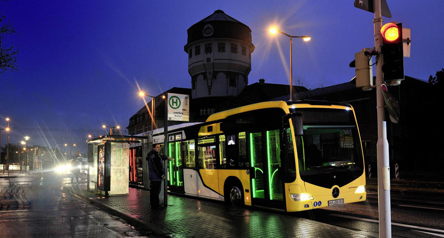 Wie das Bus-System der Zukunft aussieht, wurde jetzt bei den Bremerhavener Bustagen vorgestellt. Rot stehen – grün gehen: So einfach kann eine wegweisende Idee im Omnibus der Zukunft aussehen. Eine Idee, die die Fahrgastströme im und auch vor dem Bus optimieren wird. Dabei handelt es sich einfach ausgedrückt um beleuchtete Türeinstiege, die Fahrgästen künftig schnell und eingängig symbolisiert, wo sie rein oder raus dürfen. Das Ganze ist nur eine, der vielen Ideenansätze aus dem EBSF (European Bus System of the Future) Verkehrsprojekt, die in Bremerhaven der Öffentlichkeit vorgestellt wurden. Im Rahmen einer Konferenz, organisiert von den EBSF-Projektpartnern sowie der UITP und dem VDV, wurden die aktuellen Aktivitäten aus dem EU-Forschungs- und Demonstrations-Projektes diskutiert - insbesondere das EBSF-Teilprojekt in Bremerhaven. Neben den theoretischen Ansätzen wurden auch bereits realisierte Lösungen, wie die des Demonstratorfahrzeugs auf Basis eines Mercedes-Benz Citaro und die Vision eines ergonomisch optimierten europäischen Busfahrerarbeitsplatzes behandelt. EBSF ist bisher das größte von der Europäischen Kommission geförderte straßengebundene Verkehrsprojekt. Es gilt als übergreifendes, weit vernetztes Forschungsprojekt zur Gestaltung und Entwicklung eines innovativen und hochqualitativen europäischen Omnibussystems der Zukunft. Das Ziel von EBSF: Potenzial einer neuen Generation städtischer Busnetzwerke aufzuzeigen mit besonderem Augenmerk auf einen integrierten Systemansatz (Fahrzeug, Infrastruktur, Technik, Betrieb) in dem die Fahrgastanforderungen aller Altersstrukturen berücksichtigt werden. Ergebnisse und technische Lösungen der Projekte werden in sogenannten „Use Cases“ (Demonstrations-Projekten) realisiert und im Alltagsverkehr getestet. Insgesamt sind sieben Demonstrations – Projekte in sieben europäischen Städten vorgesehen. Davon ist ein Demonstrator-Fahrzeug nun im Bremerhavener Stadtverkehr unterwegs und ein Demonstrations-Projekt, die Vision eines ergonomisch optimierten europäischen Busfahrerarbeitsplatzes, steht zu virtuellen Fahrten im Dresdner IVI-Frauenhofer Institut bereit.