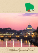 Rechtzeitig noch vor dem Workshop „VPR – Pakete & Trends on Tour 2011“ wird der Kölner Italienspezialist Italweg seinen Katalog für 2012 veröffentlichen. Der Katalog trägt den Titel „Italien Spezial 2012“ und bietet eine Fülle von themenbezogenen Reisen. So werden Religiöse Reisen, Wein- und Genussreisen, Aktivreisen, Städtereisen, Erlebnisreisen und Klassische Reisen in Italien präsentiert und beschrieben. Auch zahlreiche „Tipps“ für besonders interessante Programmpunkte und Leistungen sind zu finden. Der Katalog wurde auf nunmehr 48 Seiten erweitert und in übersichtlicher Form findet der Leser einen Querschnitt durch ganz Italien und eine Reihe interessanter Hinweise. Enthalten sind auch die seit Jahren sehr beliebten Reisen, bei denen in gewissen Zeiträumen keine Einzelzimmerzuschläge erhoben werden. Neu aufgenommen in das Programm des Kölner Italienspezialisten sind z. B. eine Reise in die mittelitalienische Region Abruzzen, eine Kombireise mit Fährüberfahrten an den Golf von Neapel und nach Sizilien, eine Radreise durch die malerische Lagunenlandschaft Venetiens sowie eine attraktive Reise zu den Kunststätten in der Region Friaul-Julisch-Venetien.