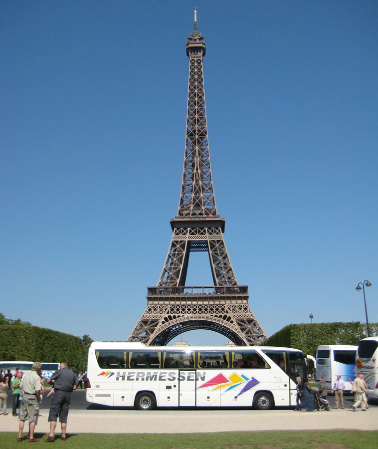 Felix Franke mailte uns dieses Foto eines der Reisebusse des Busunternehmens Reisedienst Hermessen aus Soest in Paris auf dem “Champ de Mars“ mit dem Eiffelturm im Hintergrund.Auch er nimmt damit teil an der EuroBus-Verlosung eines iPad (am letzten Tag des RDA-Workshops am Stand von EuroBus an der Rolltreppe oben).