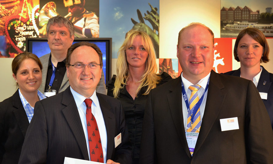 Nach dem Rekordjahr 2010 melden Bremen und Bremerhaven erneute Wachstumszahlen. Peter Siemering, Geschäftsführer der Bremer Touristik Zentrale sprach heute am Stand von 9,7 Prozent und Kollege Volker Koelling von Bremerhaven BIS von 10,7 Prozent. Leider läuft die Ausnahmegebehmigung Umweltzonen aus. “Ab 1.Januar nur noch mit grüner Plakette“, lautet die Devise. Ob es weiter Ausnahmen gibt, entscheiden die nächsten Wahlen im Mai, so die Vermutung. Zum RDA brachte Martina Ziesing (BTZ) den neuen digitalen Sales Guide mit.