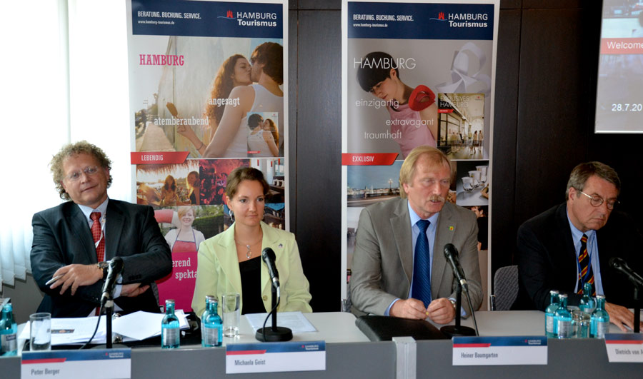Die Hansestadt ist kräftig im Aufwind und rüstet sich, Europas Broadway zu werden. Da Stage Entertainment ein viertes Theater neben dem “König der Löwen“ bauen wird, will man “London ablösen als Europas Nr.1“, trug Dietrich von Abedyll, Hamburgs oberster Touristik-Werber, beim RDA heute stolzes Selbstbewusstsein zur Schau. Auch der in der Bustouristik bekannte Peter Berger ist wieder im Hanse -Boot. Und zwar bei den Fliegenden Bauten , Hamburgs Theater für Neuen Zirkus, Tanz und Theater. Mehr 10.1, K11.