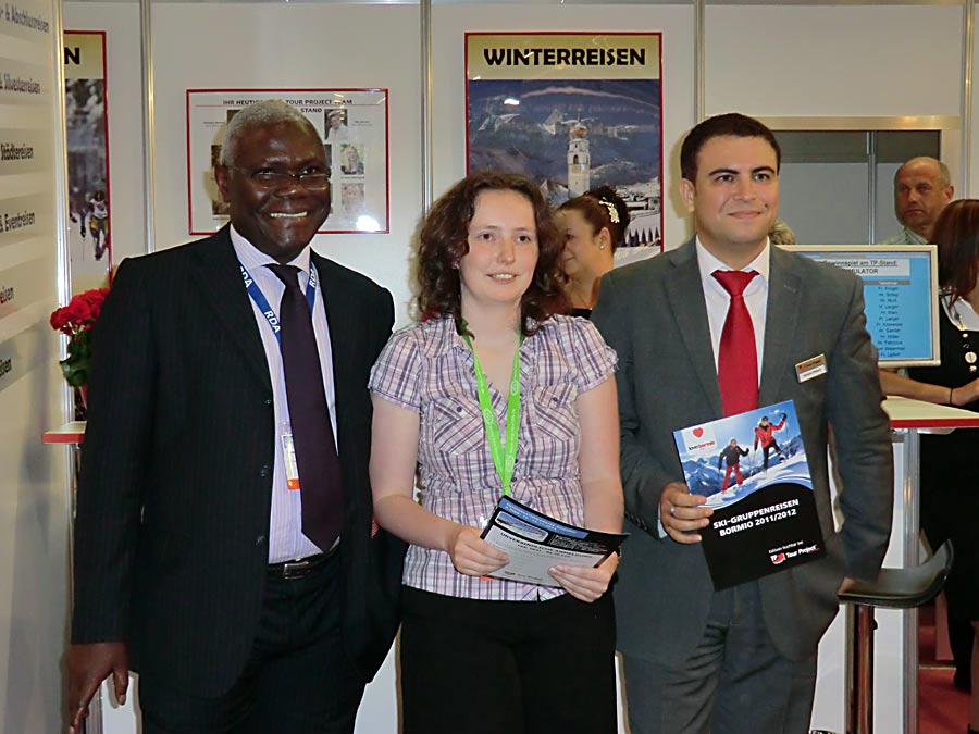 Anlässlich der Kooperation von Tour Project mit Bormio Reisen bezüglich Skigruppen-Reisen nach Bormio, sollten die Fachbesucher des diesjährigen RDA Workshops ihr Geschick beim Abfahrtski auf dem Ski-Simulator am Stand von Tour Project unter Beweis stellen. Auf die Gewinnerin des ersten Preises, Frau Krüger von Maass Reisen, wartet eine Informationsreise nach Bormio im November 2011.