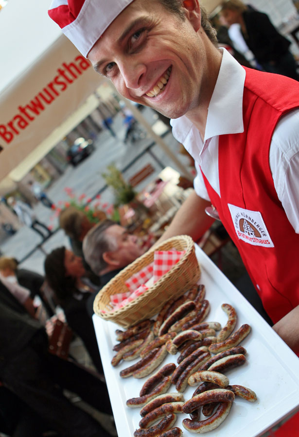 Zum ersten Mal auf dem RDA-Workshop stellte sich das erste Original Nürnberger Bratwursthaus mit der Idee vor, kulinarische Tradition mit zeitgemäßer Systemgastronomie zu Verbinden. Bei der offiziellen Eröffnung am 4.7.2011 kamen zahlreiche geladene Gäste und Geschäftspartner sowie Vertreter aus Politik, Wirtschaft und Gesellschaft zusammen. Die Unternehmer André Roßnagel und Joachim Mengwasser begrüßten die prominenten Gäste und natürlich alle Systempartner persönlich und freuten sich über so viel positives Feedback. Das geladene Publikum und die anwesende Prominenz ließ sich natürlich die bekannteste Nürnberger Spezialität nicht entgehen: Und so wurden “Eine auf die Gabel“ oder „Saure Zipfel“ zu den kulinarischen Hits des Abends. Unter anderem ließen sich von der Stadt Nürnberg Dr. Hartmut Frommer – seines Zeichens auch Vorsitzender des Schutzverbandes Nürnberger Bratwürste e.V. – und Kulturreferentin Dr. Julia Lehner die feinen, kleinen Nürnberger Köstlichkeiten schmecken. Der Name soll aber nicht nur für frische, feine Spezialitäten stehen, sondern auch als internationaler kulinarischer Botschafter Nürnbergs den guten Ruf fränkischer (Ess)Kultur in die ganze Welt hinaus tragen. www.original-nuernberger-bratwursthaus.de