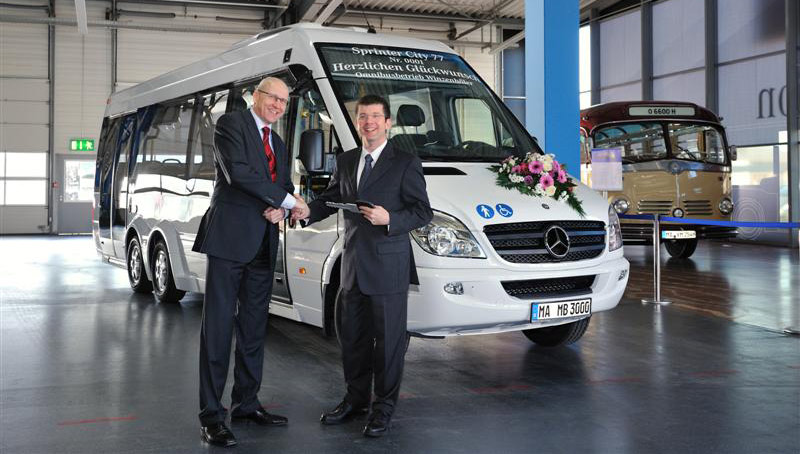 Der erste Mercedes-Benz Sprinter City 77 ausgeliefert worden- und zwar an Christian Winzenhöler, Geschäftsführer des Omnibusbetriebs Winzenhöler. Entscheidungskriterien für den Kauf des Sprinter City 77 waren seine hohe Beförderungskapazität bei sehr kompakten Abmessungen, seine Wendigkeit und wirtschaftliche Aspekte. Der neue Sprinter City 77 ist mit 8,7 m Länge das aktuelle Stadtbus-Topmodell im Mercedes-Benz Minibusprogramm. Das Niederflur-Fahrgestell mit Tandem-Hinterachse ist, wie der Aufbau des Sprinter City 77, eine exklusive Eigenentwicklung der Mercedes-Benz Minibussparte. Mit Platz für bis zu 40 Fahrgäste schließt er die Lücke zwischen dem Sprinter City 65 und dem 10,5 m langen Citaro K. Der Sprinter City 77 bietet gegenüber dem bisherigen Klassenprimus dieser Fahrzeugreihe, dem Sprinter City 65, rund einen Meter mehr Fahrzeuglänge, vollständig zu Gunsten des Fahrgastraumes, zehn zusätzliche Fahrgastplätze, einen durchgängig stufenlosen Niederflurboden im Fahrgastraum und einen zweiten Rollstuhlplatz. Dank des vergleichsweise kurzen Radstands und der schlanken Bauweise ist auch der größte Mercedes-Benz Stadt-Minibus prädestiniert für enge Innenstädte. Darüber hinaus bietet sich der Sprinter City 77 sowohl als Shuttlebus für Flughäfen und Messen als auch für den Einsatz im Überlandverkehr an. Mit Abgasstufe Euro V bzw. EEV (Enhanced Environmentally Friendly Vehicle) ist der Sprinter City 77 der zukünftige Saubermann des Omnibusbetriebes Winzenhöler. Der Omnibusbetrieb wird bereits in dritter Generation von Familienmitgliedern geführt und beschäftigt rund 50 Mitarbeiter. Mit 42 Omnibussen befördert Winzenhöler mehrere tausend Fahrgäste im Rhein-Main-Gebiet. Die Fahrzeuge werden im Linien- als auch im Gelegenheits- und Sonderverkehr eingesetzt.