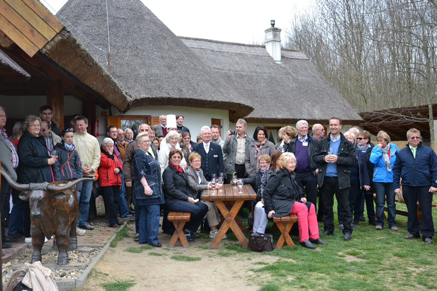 Über 60 bestgelaunte Busunternehmer/Innen grüßen die daheim gebliebenen EuroBus-Leser aus dem ungarischen Kurbad Heviz! Bei dem heutigen Ausflug in das nahe gelegene Büffelreservat bei Balatonmagyarod gab es ein Überraschungs-Picknick von EuroBus und Frankenland Reisen mit originaler Büffelsalami. Die Idee des Kurpendels in Verbindung mit dem herausragenden Angebot der rund um den Balaton ansässigen Kurhotels kam bei den Busreiseveranstaltern sehr gut an. “Alles bestens“, so die “Eurobussler“ kurz vor dem Gala-Empfang heute Abend im Schloss.
