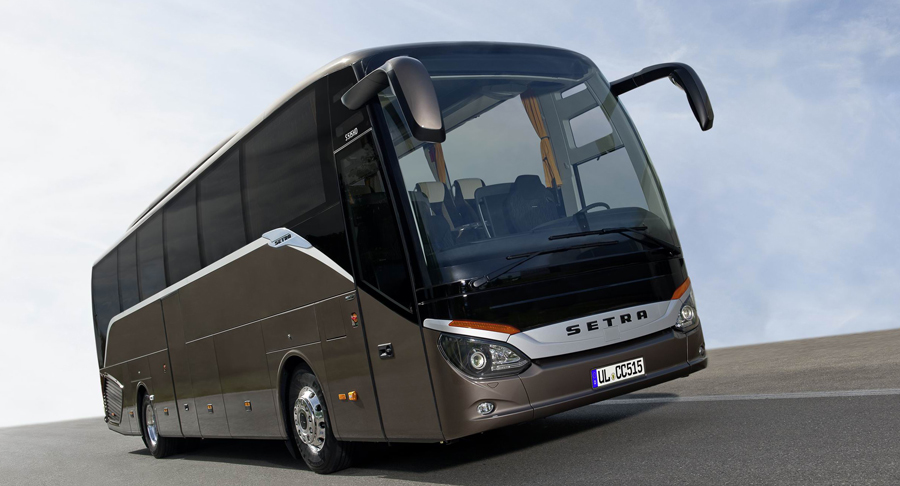 Der erste Blick auf die neue Reisebusgeneration ComfortClass 500 zeigt es deutlich: Ein typischer Setra im dynamischen und selbstbewussten Auftritt, der neue Bestmarke in Komfort und Sicherheit setzt und das Premiumsegment im Reisebus neu definiert. Im Herbst 2012 gehen der zweiachsige Typ S 515 HD, die zwei- und dreiachsigen S 516 HD sowie der dreiachsige S 517 HD an den Start. Sie überzeugen durch eine fundiert weiterentwickelte Formgebung, die die Klammer zwischen Bewährtem und Modernem fortführt. Bekannte Elemente der Ulmer Daimlermarke vermitteln im neuen Stil die klassischen Setra Werte Innovation, Komfort, Wirtschaftlichkeit und Sicherheit. Lothar Holder, Setra Markensprecher von EvoBus: „Mit der neuen ComfortClass 500 wollen wir unsere Kunden nicht nur auf die Herausforderungen der kommenden Jahre einstimmen. Mit dieser neuen Fahrzeug-Generation setzen wir als Technologieführer Maßstäbe bei Design, Aerodynamik sowie Effizienz und machen schon heute die Zukunft erfahrbar.“ Typisches Merkmal der ComfortClass 500 ist die geschwungene, leicht ansteigende und abfallende Seitenlinie mit dem neuen Dekor-Element an der B-Säule – eine weiche Bewegung, die rund um das komplett neu entwickelte Fahrzeug verläuft. Im Frontbereich verleiht sie dem neuen Reisebus ein freundliches, aber bestimmtes Gesicht. Prägnant sind der lange Dachabzug vorne sowie die deutlich stärker gewölbte Windschutzscheibe, die tief bis zur vorderen Logoblende mit dem dreidimensionalen Setra-Schriftzug gezogen ist. Die Front wurde, ebenso wie die neu gestalteten Außenspiegel, in einem aufwendigen Entwicklungsprozess in ungezählten Windkanalstunden optimiert. Zusammen mit dem neuen Aeroheck sowie weiteren Detailmaßnahmen erreicht die ComfortClass 500 einen bisher in diesem Segment für unerreichbar gehaltenen Cw-Wert von 0,33. Die ebenfalls neuen, modular gestalteten Scheinwerfer- und Blinkersegmente mit unverkennbaren Zierelementen unterstreichen Wertigkeit, Sicherheit und Zuverlässigkeit und bilden den sanften Beginn der umlaufenden Linienführung, die flügelartig in die Seitenbereiche hinein schwingt. Die ComfortClass 500 setzt nicht nur die im Jahr 2014 in Kraft tretende Abgasnorm Euro VI für Neufahrzeuge bereits um sondern beinhaltet im Gesamtkonzept auch zahlreiche Sicherheitsbestimmungen und gesetzliche Regelungen der kommenden Jahre. Dazu zählen unter anderem die von 2015 an geltenden zusätzlichen Anforderungen an die Fahrerassistenzsysteme sowie die zwei Jahre später in Kraft tretende Richtlinie ECE-R 66/01, die eine verstärkte Überrollfestigkeit der Reisebusse vorschreibt. Der Markentradition Setra entsprechend wurde für letzteres ein intelligentes Leichtbaukonzept mit mehr Festigkeit bei weniger Gewicht entwickelt. Die neue ComfortClass 500 wird von Motoren der neuen „BlueEfficiency Power“ Generation von Mercedes-Benz angetrieben. Der neue Reihensechszylinder OM 470 mit 10,7 Litern Hubvolumen ist verbrauchs- und leistungsoptimiert und hat bei 1800 1/min eine Leistung von 315 kW (428 PS). Sein maximales Drehmoment von 2 100 Nm erreicht der Motor bereits bei einer Drehzahl von 1 100 1/min. Auch die aerodynamisch geformte Gestaltung der ComfortClass 500 und ein Bündel an gewichtsreduzierenden Maßnahmen tragen dazu bei, dass Setra im Herbst einen Reisebus präsentiert, der neben einer Vielzahl an exklusiven Ausstattungsvarianten auch mit einem weiter reduzierten Kraftstoff-Verbrauch auf sich aufmerksam machen wird.