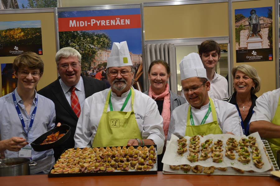 Halle 10.1, neben der Rolltreppe. Heute Abend ab 18 Uhr lädt Joachim Schweda an den Stand von Touren Service Schweda zu einer exquisiten Gourmet-Party mit französischen Köchen. Frisch zubereitet vor den Augen der Fachbesucher werden Köstlichkeiten aus den Midi-Pyrenäen, aus dem Elsass und anderen Regionen.