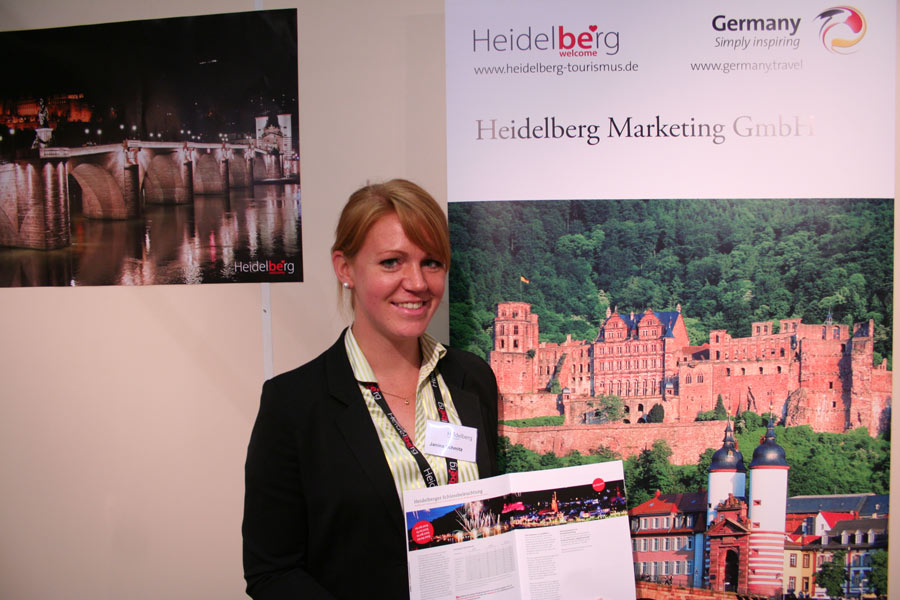 Im nächsten Jahr gibt es die Heidelberger Schlossbeleuchtung seit 400 Jahren. Statt mit Fackeln und Feuer erstrahlt das Schloss 2013 gleich an vier Wochenenden in romantischen Farben, unterstützt durch große Feuerwerke auf dem Neckar. Janina Schmitz von Heidelberg Marketing bietet beim RDA die ersten Buchungsmöglichkeiten für 2013 an. Die Termine für die Schlossbeleuchtung sind das erste Wochenende im Juni und September sowie das zweite Wochenende im Juli und August. Für Gruppen gibt es attraktive Programme mit Stadt- und Schlossführung, Schifffahrt mit Menü sowie Erlebnis des Feuerwerks. Nähere Info unter www.heidelberg-marketing.de