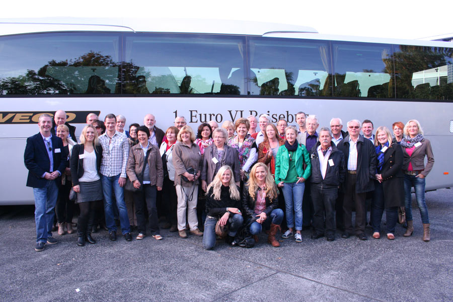 Bremerhaven. Ein Wochenende der Super-Stimmung erlebten 34 Busunternehmer und Reiseveranstalter bei der EuroBus Leserreise vom 19. – 21. Oktober in Bremen und Bremerhaven. „Eine tolle Informationstour“, urteilten sie einstimmig. Alles passte: Überragendes Herbstwetter mit sommerlichen Temperaturen, eine ausgeprägte Feierlaune der Mitreisenden, vor allem aber die perfekte Vor-Ort-Organisation durch Jan Rohrbach (Bremerhaven) und Hans-Peter Krüger (Bremen). An der Wesermündung in Bremerhaven überzeugten die Havenwelten mit ihrem unvergleichlichen maritimen Flair. Schiffe, Schleusen, Leuchttürme, Museen und Fisch- Restaurants vermitteln das Gefühl von der großen weiten Welt. Höhepunkt der Leserreise war die „Dicke Pötte Tour“, eine Abendfahrt mit dem Ausflugsschiff durch das Container-Terminal während des Nachtumschlags. Der Faszination der alten Seemannslieder konnte und wollte sich niemand entziehen. Alle feierten ausgelassen mit wie bei einem großen Familienfest. Das Bundesland Bremen präsentierte sich als attraktives Ziel für Gruppenreisen. Alles liegt nah beieinander und kann weitgehend zu Fuß erreicht werden. In Bremerhaven zeigt das Deutsche Auswandererhaus die Lebensumstände, Gefühle und das Schicksal von sieben Millionen Menschen, die innerhalb der letzten beiden Jahrhunderte von Bremerhaven aus nach Nord- und Südamerika auswanderten. Seit April ist in einem Erweiterungsbau auch das Leben der Einwanderer nach Deutschland dargestellt. Das Klimahaus Bremerhaven 8 Grad Ost ist eine einzigartige Wissens- und Erlebniswelt. Bei einer Rundreise um die Welt erlebt der Gast hautnah alle Klimazonen – entlang des achten Längengrades von Bremerhaven zum Beispiel über die Antarktis und durch den tropischen Regenwald. Für die Stadt Bremen waren der historische Marktplatz mit Rathaus, der Roland, die Böttcherstraße und die Bremer Stadtmusikanten ein Muss. Als interessante Gruppenziele wurden das Universum Bremen mit drei spannenden Expeditionen (Mensch, Erde und Kosmos) und die Botanika, das Naturerlebnis mit der Faszination asiatischer Pflanzen und tropischer Schmetterlinge, vorgestellt. Ebenso die maritime Meile in Vegesack im Norden von Bremen, an der neben dem Segelschulschiff Deutschland das Spicarium zu besichtigen ist. In dem authentischen Hafenspeicher ist seit 2012 eine interaktive Ausstellung über Schiffbau und Schifffahrt und die Geschichte des Vegesacker Hafens zu sehen. Mit Unterstützung der Evo-Bus GmbH reisten die Teilnehmer der EuroBus Leserreise ganz entspannt mit dem neuesten Mercedes-Benz „Travego“, dem ersten Bus mit Euro VI-Norm. Einen ausführlichen Bericht finden Sie in der nächsten Ausgabe des EuroBus.