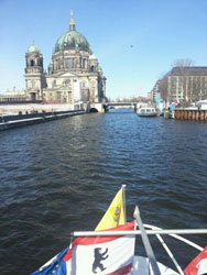 Bei strahlendem Sonnenschein startet die Gruppe der EuroBus Leserreise in das Wochenende. Der erste Programmpunkt heute: eine Spree-Rundfahrt mit der Reederei Riedel.