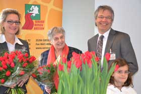 Auf unserem Foto zu sehen sind Kristiane Heyne-Strauch (v.l.), Mutter Ingrid Heyne, Karl Heyne und Lena, die Tochter von Kristiane mit der neuen Tulpe.