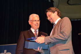 Maßgeblichen Anteil an der positiven Lösung vieler Konflikte rund um die PbefG-Novellierung habe der Parlamentarische Staatssekretär beim Bundesverkehrsminister, Dr. Andreas Scheuer, gehabt. Der Bundestagsabgeordnete (auf unserem Foto rechts mit Wolfgang Steinbrück) sprach unter dem Applaus der Versammelten von einem "harten Jahr mit äußerst komplizierten Sachverhalten", wobei letztlich die Zusammenarbeit aller Fraktionen zu einem befriedigenden Ergebnis für die Branche geführt habe.