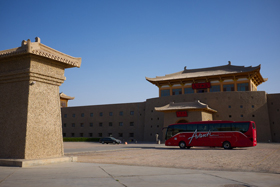 Einmal mit einem Reisebus um die ganze Welt fahren: Der Freiburger Veranstalter Avanti Busreisen wagt dieses Abenteuer und ist gemeinsam mit vielen abenteuerlustigen Gästen bereits seit April unterwegs. Die Reise entlang der Seidenstraße und der Panamericana dauert insgesamt neun Monate und führt durch 26 Länder. Shanghai, das letzte Ziel des Seidenstraßen-Abschnitts, hat der Bus bereits erreicht. Unser Foto zeigte den Avanti-Setra vor einem Hotel in Dunhuang.