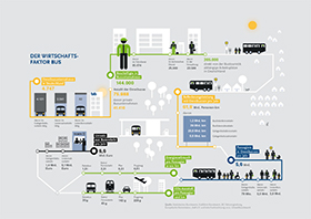 In einer aktuellen Grafik zeigt der bdo den Wirtschaftsfaktor Bus: So sichert die Busbranche in Deutschland mit Milliardenumsätzen mehr als 200 000 Arbeitsplätze.