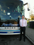 Die Stimmung unter den mitreisenden Bus- und Gruppentouristikern ist ausgezeichnet, schließlich wird man höchst komfortabel im neuesten Setra-Reisebus der ComfortClass 500, dem S 515 HD von Rosi-Reisen, chauffiert. Unser Foto entstand bei einer Pause und zeigt Jercy Stenzel, unseren Fahrer des Busunternehmens aus Marl, vor dem preisgekrönten Reisebus der Superklasse.