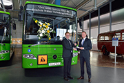 Im Mannheimer Stammwerk von Mercedes-Benz Omnibusse sind jetzt drei Überlandomnibusse des Typs Intouro an die Willms Reinhold Verkehrsgesellschaft mbH übergeben worden. Unter den drei Fahrzeugen ist das Jubiläumsfahrzeug mit der Fahrgestellnummer 6000. Ralph Willms, Geschäftsführer der Willms Reinhold Verkehrsgesellschaft (Foto, links), nahm den symbolischen Schlüssel des Jubiläumsfahrzeuges von Rüdiger Kappel Mercedes-Benz Omnibusse, entgegen.