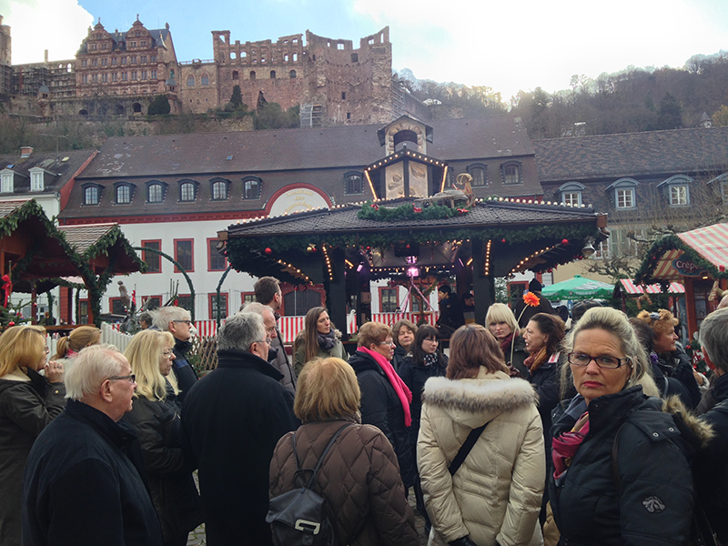 Bei der aktuellen EuroBus-Leserreise stehen u.a. Weihnachtsmärkte im Mittelpunkt: Heidelberg und sein Weihnachtsmarkt (Foto: Wellisch) vor der prächtigen Kulisse des historischen Schlosses ist heute die erste Station der Reise, die die Teilnehmer in den nächsten Tagen weiter nach Stuttgart und bis nach Strasbourg führt.
