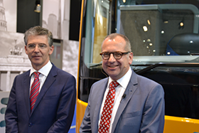 CEO Philipp Van Hool (Foto rechts, mit Jan Van Hool) hat bei der IAA die Weltpremiere des neuen Basis-Modell des InterCity Busses präsentiert, der in verschiedenen Längenvarianten angeboten wird.