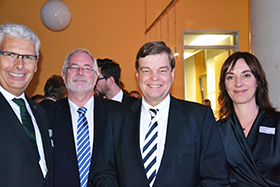 “Wir wollen den Gesprächsfaden zu den maßgeblichen Politikern auch nach dem jährlichen Fastenfischessen nicht abreißen lassen“, betonte bdo-Präsident Wolfgang Steinbrück (links auf unserem Foto mit Hauptgeschäftsführerin Christiane Leonard und dem sich engagiert für die Busbranche einsetzenden Parlamentarischen Staatssekretär Enak Ferlemann (MdB, CDU, 2.v.r.).