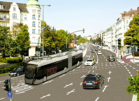 Van Hool, belgischer Bushersteller, hat einen wegweisenden Auftrag über Entwicklung und Herstellung von 2 vollelektrischen Exqui.Citys, den so genannten “Trambussen“ (Foto), erhalten, die in Hamburg eingesetzt werden sollen.