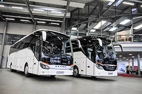 Setra ist erneut mit einem Designpreis ausgezeichnet worden. Die Reisebusse der TopClass 500 (r.) und der ComfortClass 500 (Foto: Setra) erhielten die “Special Mention 2015“ des “German Design Award“ in der Kategorie “Excellent Product Design - Transportation and Public Design“.