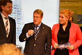 “Besonders die wachsenden Zahlen bei den Kreuzfahrten ermutigen uns, zusätzliches Gästepotenzial auf den internationalen Märkten offensiv zu generieren“, gab sich Dietrich von Albedyll (Foto, mit TV-Moderatorin des NDR und Kommunalpolitiker) am überfüllten Stand in Halle 6.2 optimistisch.