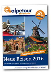 alpetour zeigt sich für die Reisesaison 2016 aber nicht nur innovativ sondern auch breit aufgestellt. Deutlich wird das im Hinblick auf die drei Kataloge “Gruppenreisen 2016“ mit den klassischen Busreisen, „Gruppen-Flugreisen 2016“ für alle, die schneller oder weiter weg möchten, und den “Flug-Zubucherreisen 2016“, bei dem auch Kleingruppen und Einzelgäste eingebucht werden können.