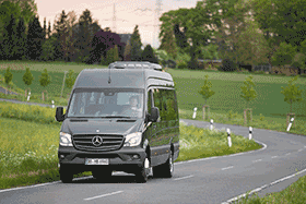 Mit dabei auf dem RDA Workshop ist der Sprinter Transfer 55. Der Mercedes-Benz Minibus ist ideal für Überland- und Schulbusverkehre, Shuttle-Services sowie Tagesausflüge kleinerer Gruppen. Insgesamt 19 Fahrgäste können es sich auf Sitzen des Typs Travel Star Sprinter mit Lederkopfteilen gemütlich machen. Das 7,6 m lange Fahrzeug verfügt über einen breiten Einstieg, eine elektrische Trittstufe an der Beifahrertür sowie über Bi-Xenon-Scheinwerfer mit Abbiegelicht und Licht- und Regensensor. Der Fahrer profitiert von einem Schwingsitz und einem in Höhe und Neigung verstellbaren Multifunktionslenkrad mit integriertem Reiserechner.