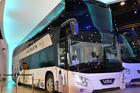(lop) Großer Andrang am Stand von VDL Bus & Coach: Bei den Niederländern wurde der im Vorfeld bereits vorgestellte neue Doppeldecker Futura FDD2 ins Rennen geführt.