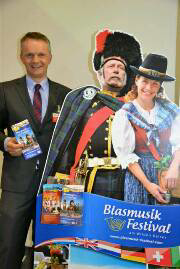 (lop) Musikalische Highlights attraktiv präsentiert: Travel Partner hat zur Zeit mit einer Marketing-Initiative großen Erfolg. Dabei handelt es sich um Aufsteller in Lebensgröße (wie ihn auf unserem Foto Georg Steiner präsentiert), die Busreiseveranstalter in ihrem Reisebüro platzieren können.