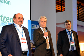 (lop) RDA-Vizepräsident Heinrich Marti (Foto Mitte) zeigte sich am Ende des ersten Workshop-Tages hoch erfreut, dass er “fast 1.000 Besucher“ vermelden konnte. Mit Michael Schürmann (Vorsitzender Workhop Service, l.) und Vorstandsmitglied Benedikt Esser (r.), der sich sehr engagiert um die Workshop-Vorarbeit im Hintergrund gekümmert habe, bedankte sich Marti bei allen Ausstellern, explizit bei den Paketreiseanbietern, die “von Anfang an diesen Workshop in Friedrichshafen unterstützt haben“.