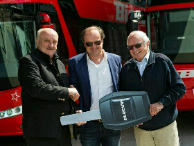 Gemeinsam mit dem Skyliner nahmen Richard jun. und Richard sen. Gsottberger auch noch einen Neoplan Cityliner von Verkäufer Edgar Binder, der das Unternehmen von Anfang an betreut, in Empfang.