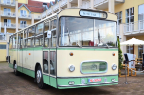 Erstmals konnten heute neben der Weltpremiere auf der IAA, dem fast 15 m langen S 418 LE business (links auf dem Foto) die weiteren Familienmitglieder S 415 LE business, der S 415 UL und der S 415 H (Mitte) aus dem insgesamt 13 Modelle umfassenden Familien-Portfolio getestet werden. Quasi “außer Konkurrenz“ fährt der Urvater aller Überlandbusse mit, der Oldtimer S 215 (rechts) aus dem Neu-Ulmer Oldie-Museum.